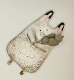 Söpö pupu avainnaulakko, jossa on käpälien välissä reikä, johon voi lisätä kuivakukkia. Koot ja värit voivat vaihdella hieman, koska jokainen kappale on käsintehty ja uniikki. Seinäkiinnitykseen suositellaan pientä, noin 5 mm:n ruuvia.