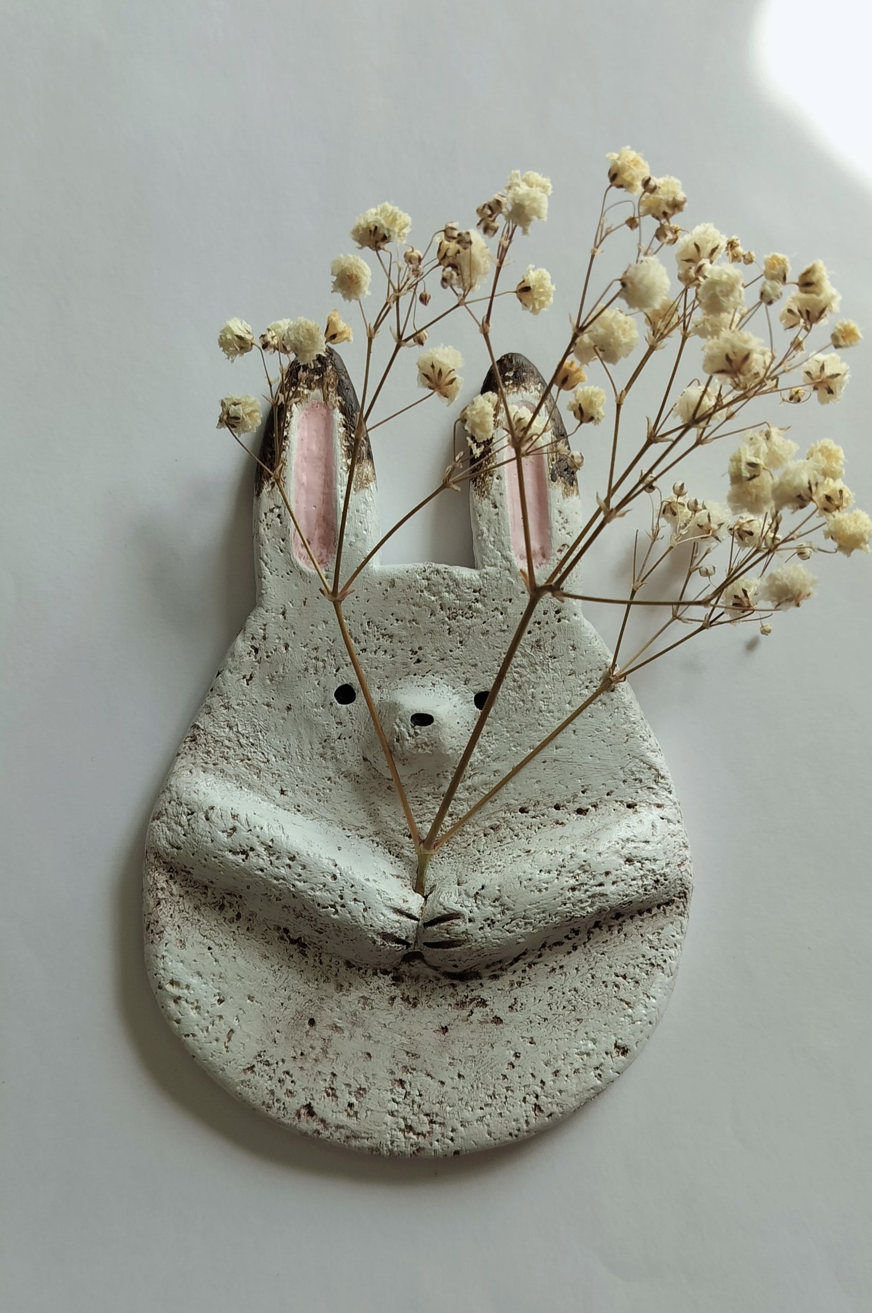 Söpö pupu, jolla on reikä käpälien välissä, johon voi lisätä kuivakukkia. Koot ja värit voivat vaihdella hieman, koska jokainen kappale on tehty käsin ja on ainutlaatuinen. Takana on koukku seinäkiinnitystä varten.