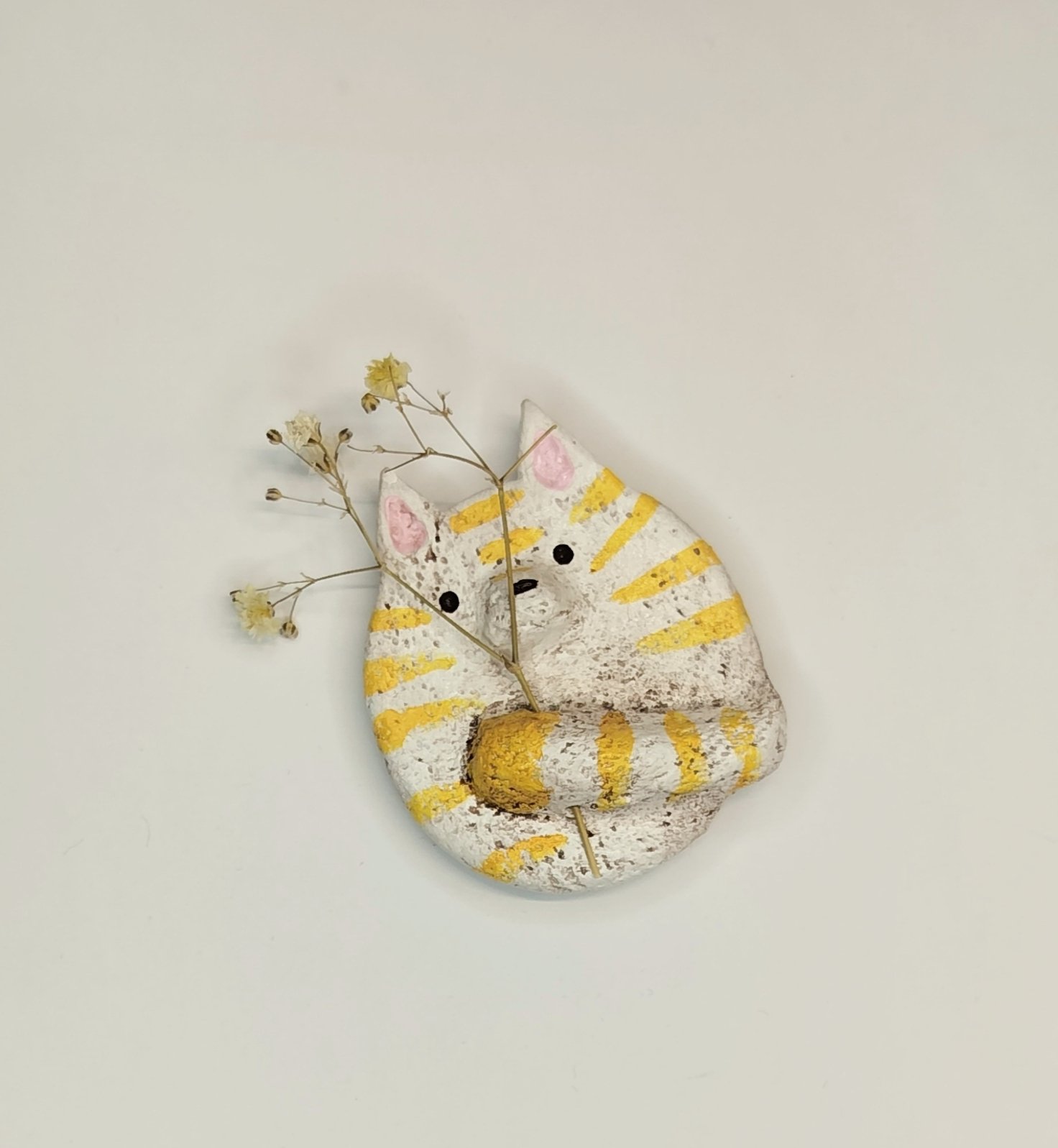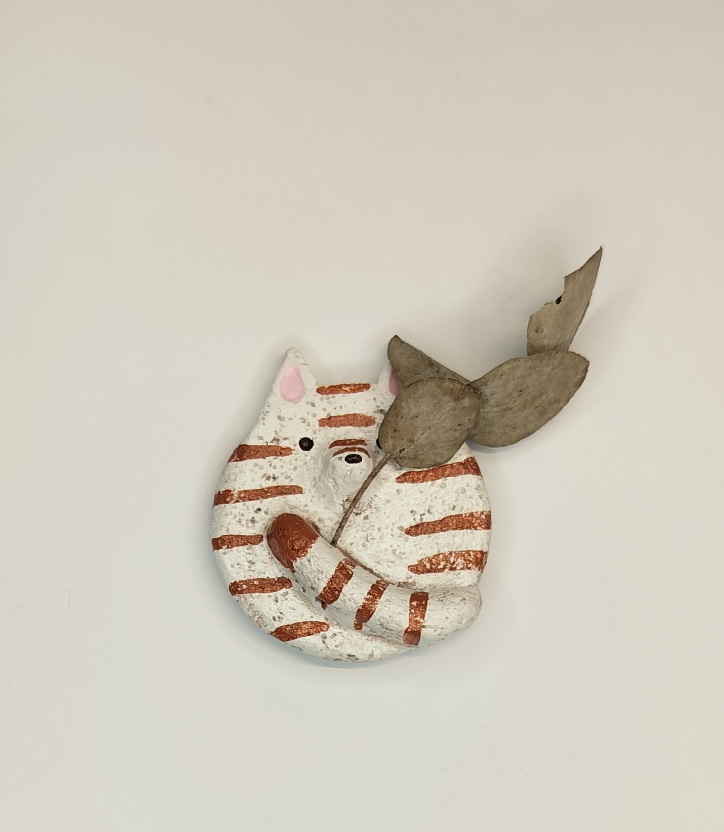 Söpö savieläinmagneetti, jonka hännässä on reikä, johon voi lisätä kuivattuja kukkia. Koot ja värit voivat vaihdella hieman, koska jokainen kappale on käsintehty ja ainutlaatuinen.