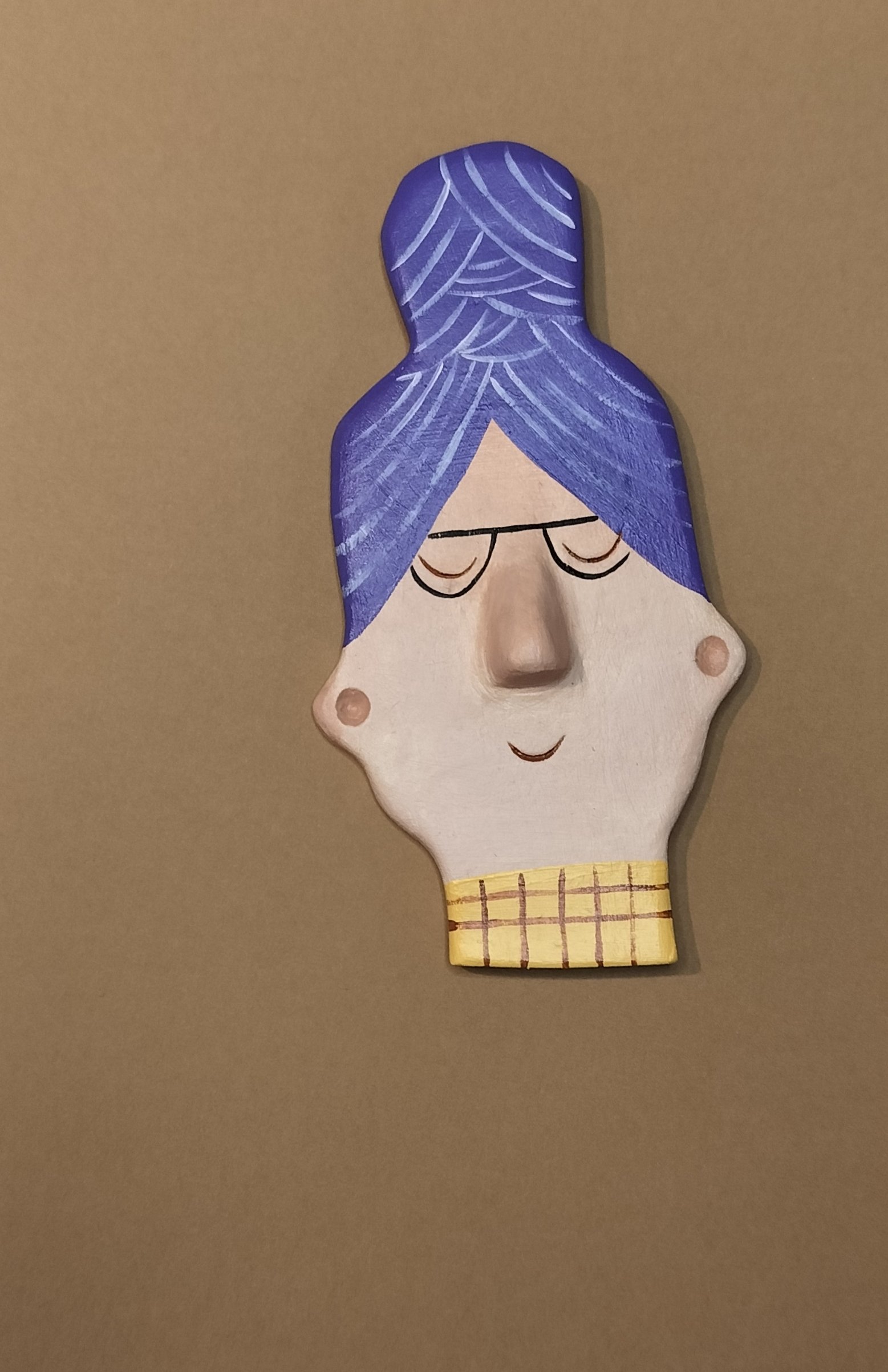 Funky clay portrait of "Maija". Has hook on the back for wall mounting. Each piece is unique and handmade, so colors and sizes may vary.