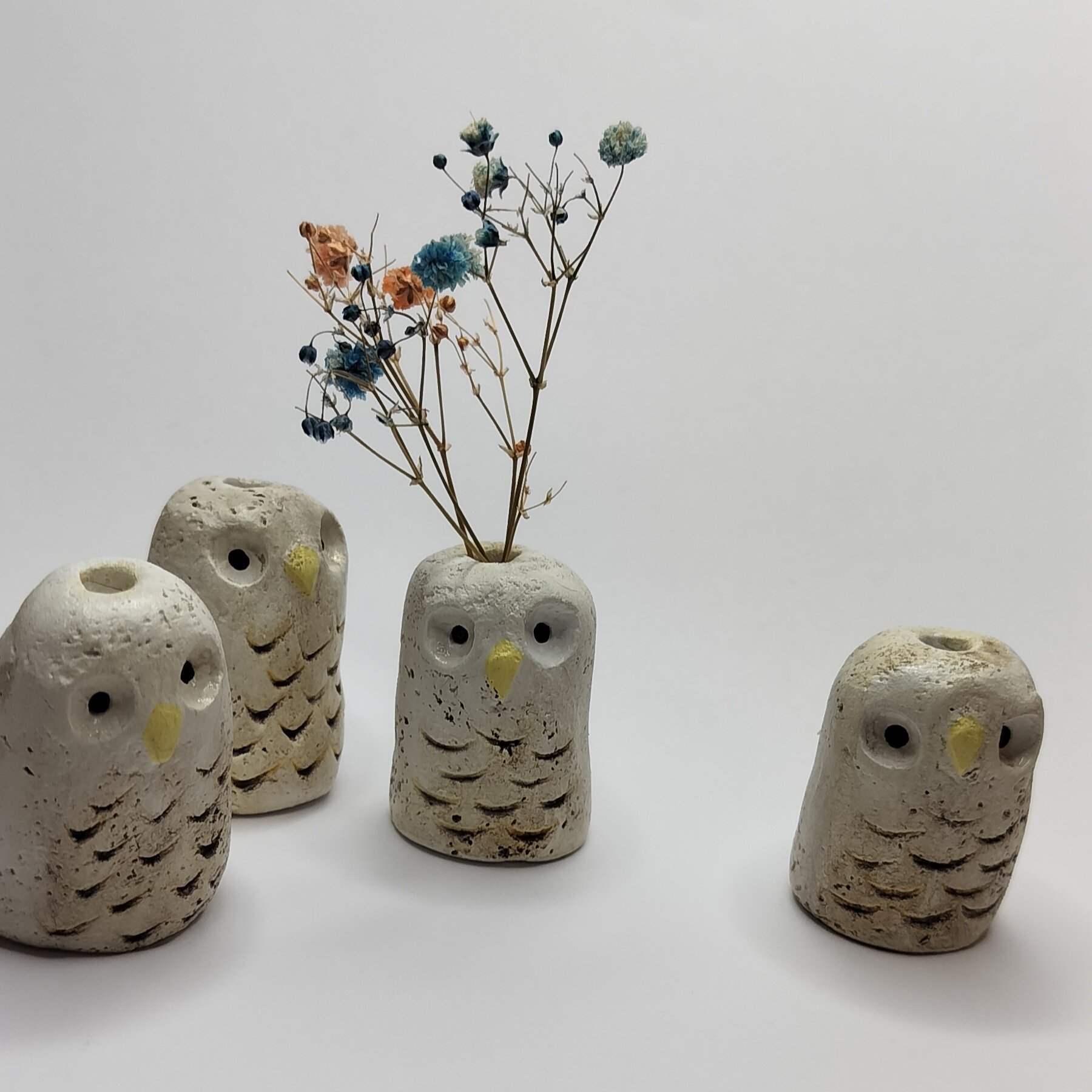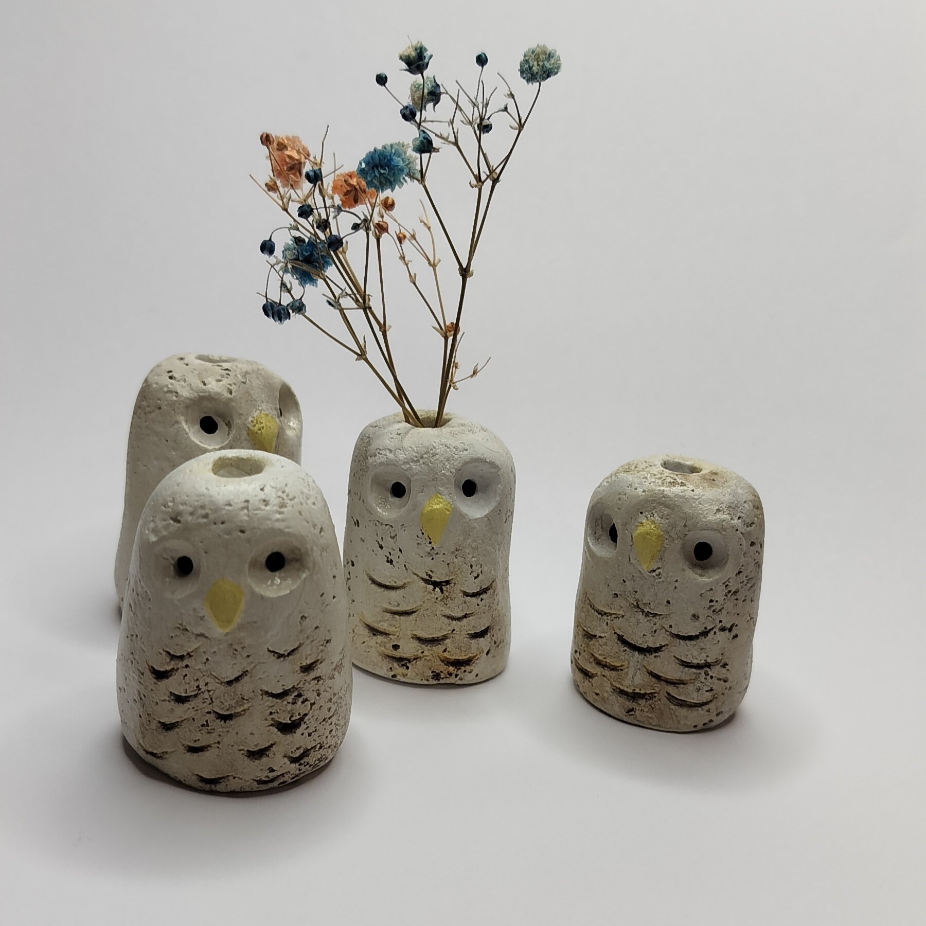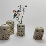 Pieniä savesta tehtyjä eläinmaljakoita kuivakukille. Jokainen kappale on ainutlaatuinen ja käsintehty, joten värit ja koot voivat vaihdella.