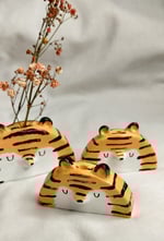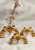 Pieniä savesta tehtyjä eläinmaljakoita kuivakukille. Jokainen kappale on ainutlaatuinen ja käsintehty, joten värit ja koot voivat vaihdella.