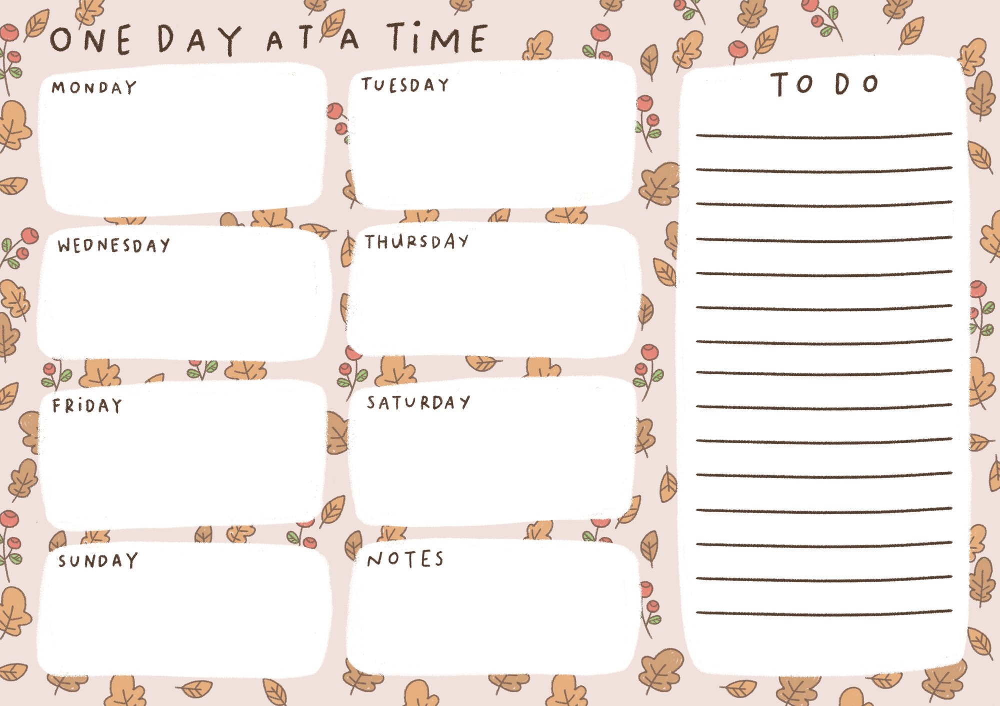 Syksyinen viikkokalenteri tulostettavaksi.🍄