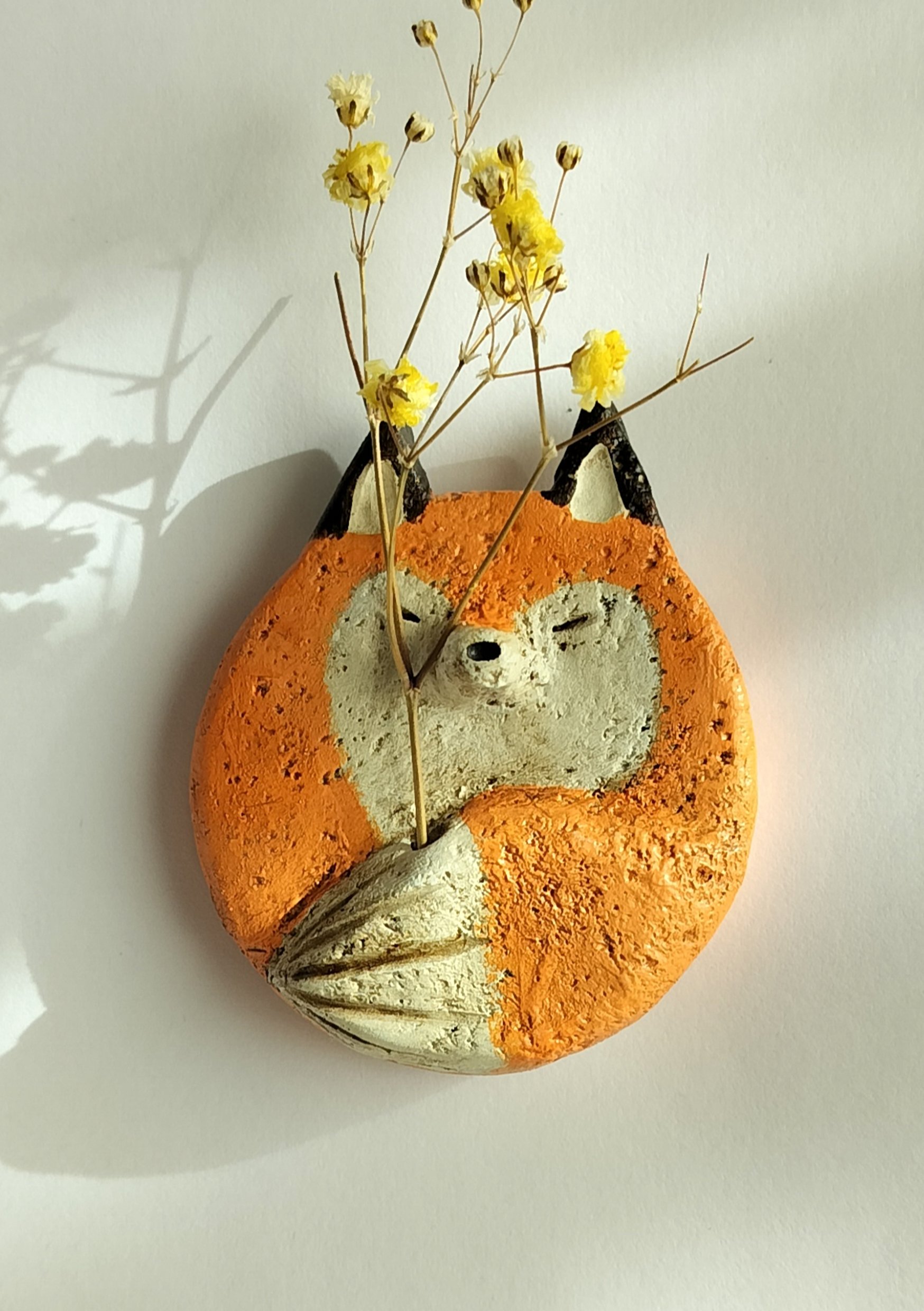 Söpö savieläinmagneetti, jolla on reikä käsien välissä tai hännässä, johon voi lisätä kuivattuja kukkia. Koot ja värit voivat vaihdella hieman, koska jokainen kappale on käsintehty ja ainutlaatuinen.